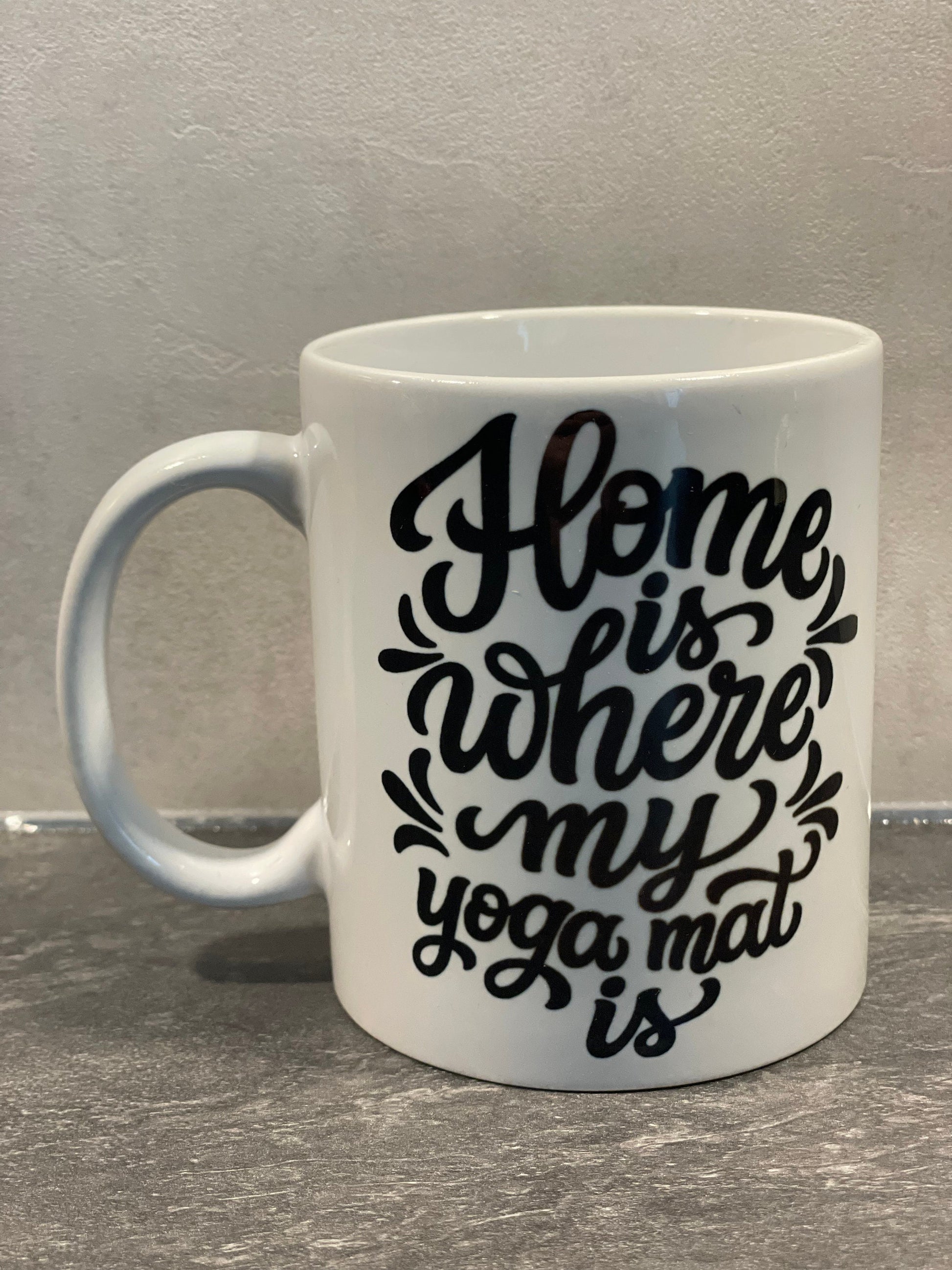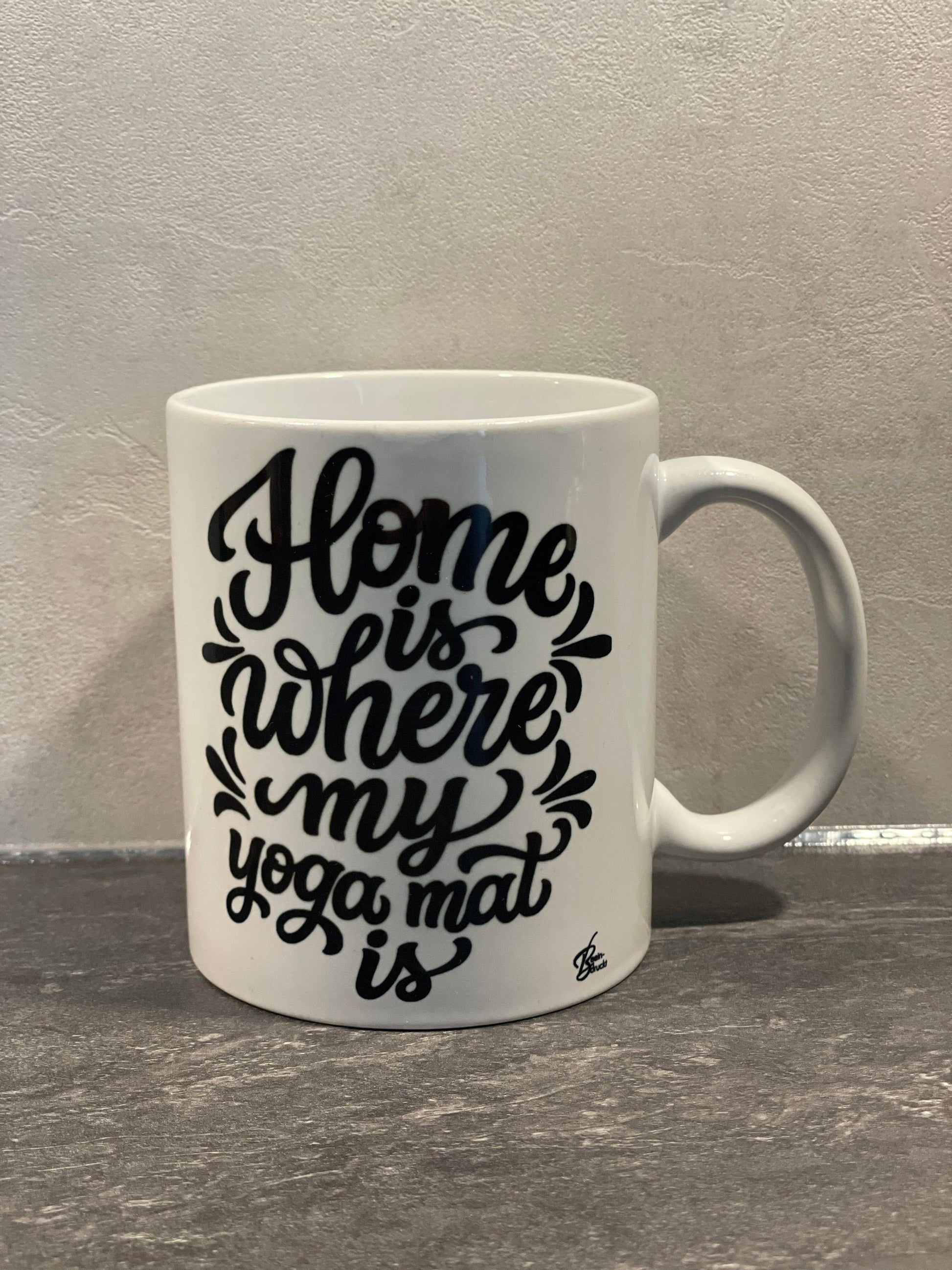 Yoga - Tasse - Home is where my Yoga mat is - individualisierbar mit Namen oder Botschaft personalisiert